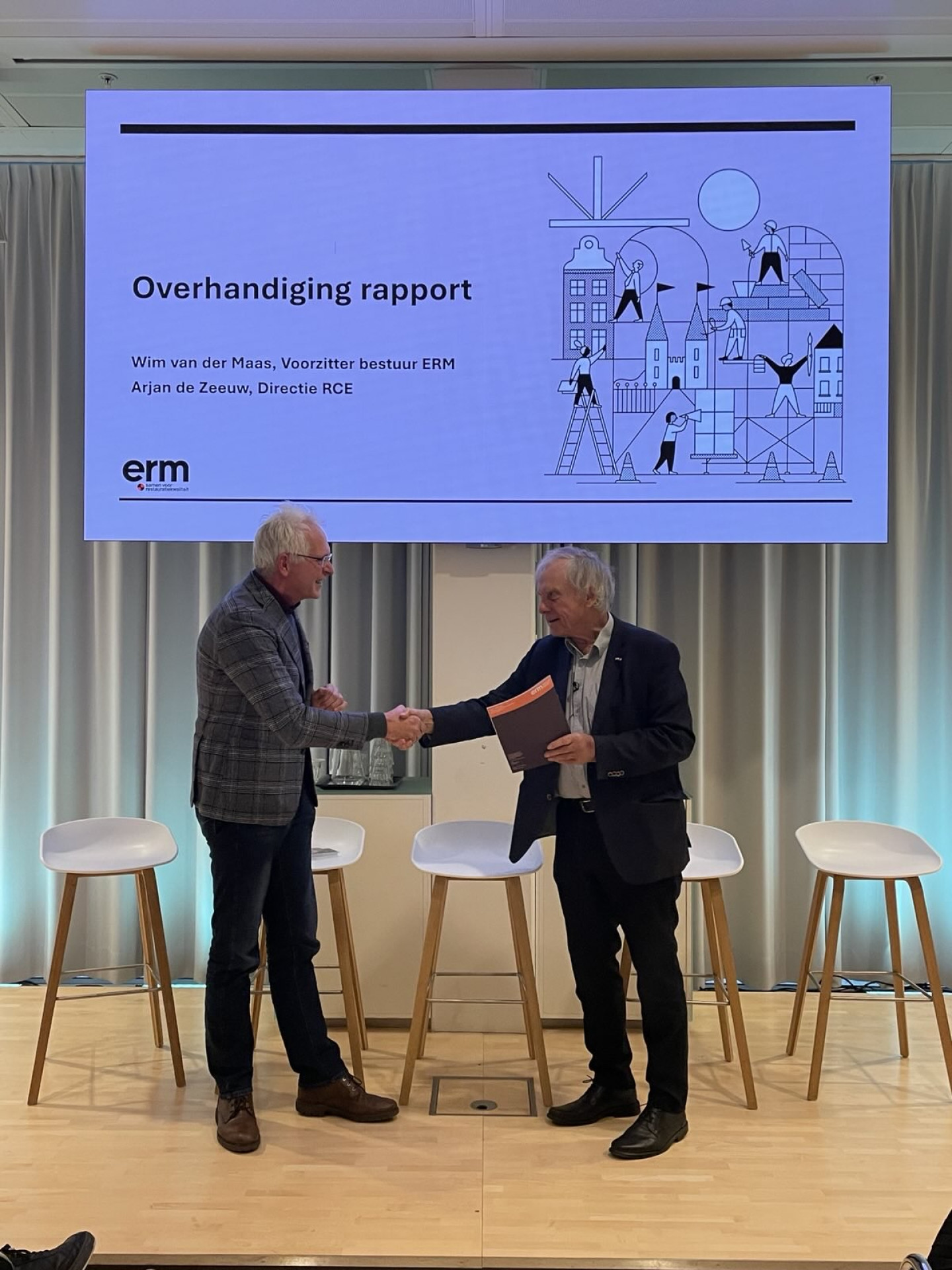 Overhandiging van het rapport door Wim van der Maas (ERM) aan Arjan de Zeeuw (RCE)